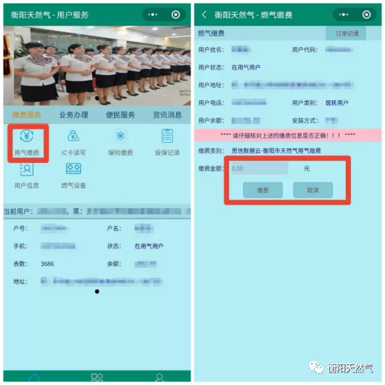 1、打開手機微信搜索衡陽天然氣或掃描下方公眾號二維碼進行關(guān)注。點擊公眾號燃?xì)夥?wù)選項選擇開始,進入繳費平臺界面。